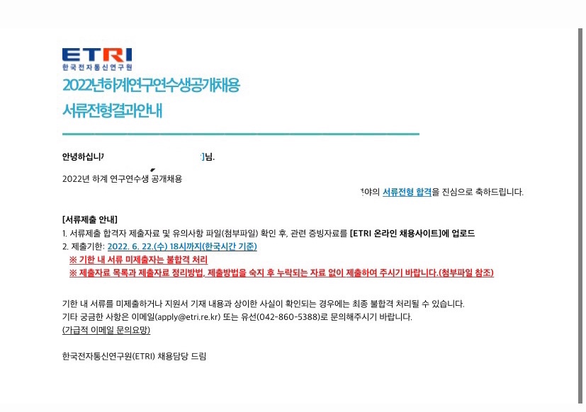 ๋ชจ๋ ์๋ฅ๋ฅผ ์ ์ถํ๊ณ ๋๋ฉด ์ถ๊ทผ 3์ผ์ ..?์ฏค ์ต์ข ํฉ๊ฒฉ ๋ฉ์ผ์ด ์จ๋ค~!